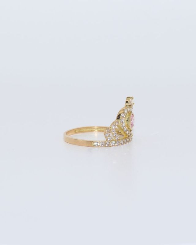 ANILLO CORONA CON CIRCONITAS ROSA Y BLANCA.Oro 18k