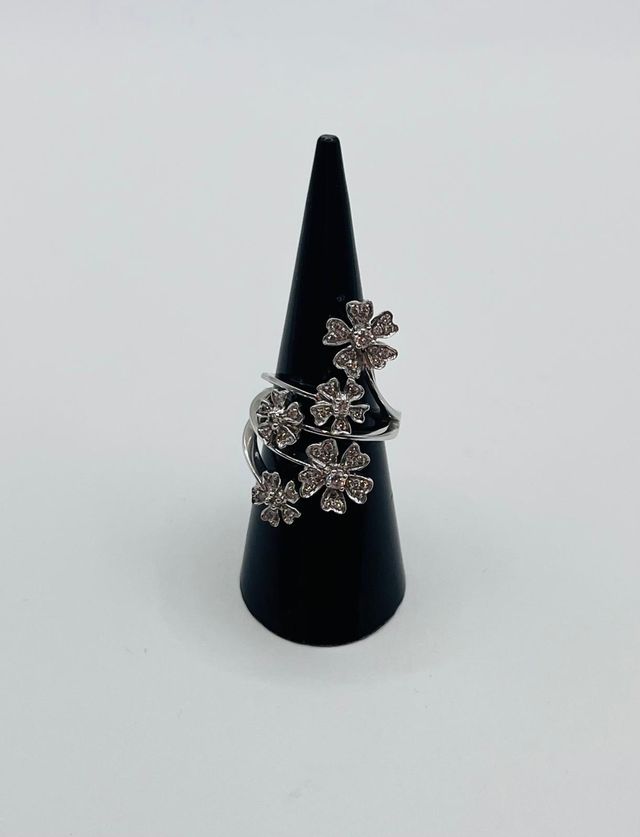 Anillo de flores oro blanco 18k con diamantes