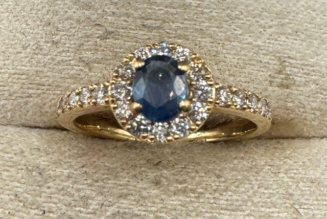 Anillo de oro de 18 kt con zafiro y diamantes