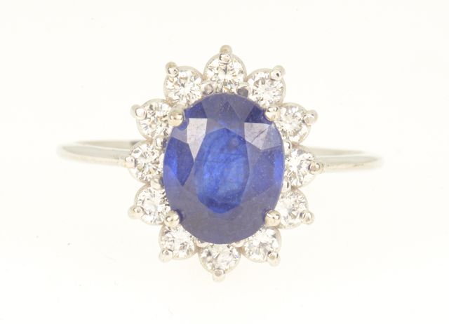 Anillo de oro de 18 kt con zafiro y diamantes