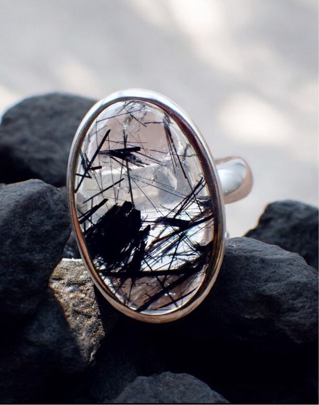 Anillo de plata 925 con piedra Cuarzo Turmalinado