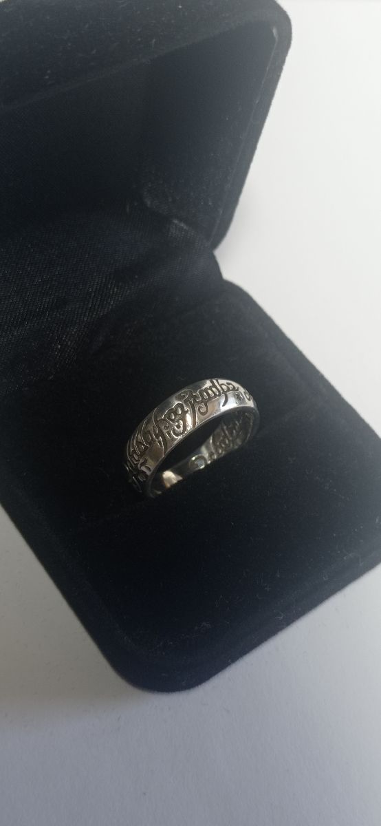 Detalles del productoSe vende anillo de primera ley (925) para los amates de la saga El señor de los anillos. El anillo de media caña lleva las letras en la parte exterior y interior!