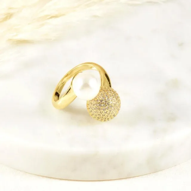 Anillo dorado con Perla y Brillantes