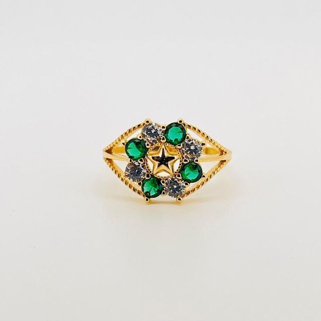 ANILLO ESTRELLA CON CIRCONITAS VERDE 18K