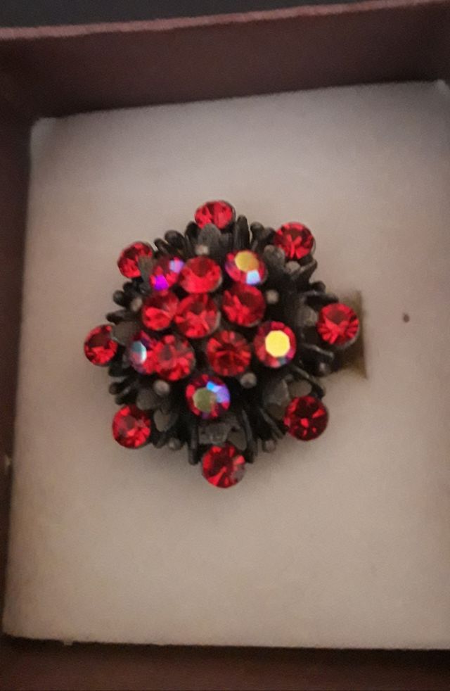 Anillo Fantasía Ajustable Rojo y Plateado