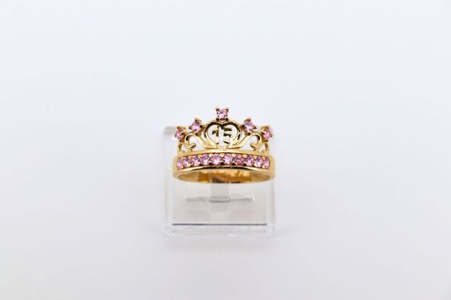 ANILLO GRANDE CORONA 15 CIRCONITAS ROSAS. Oro 18k.
