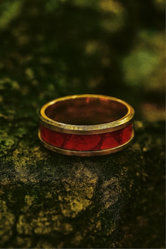 Anillo hecho a mano oro y rojo