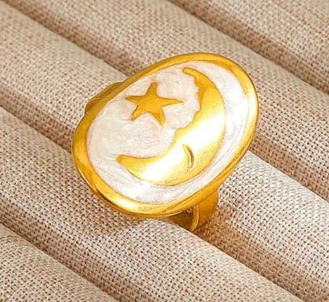 Anillo Luna y Estrella Nácar Ajustable de acero.