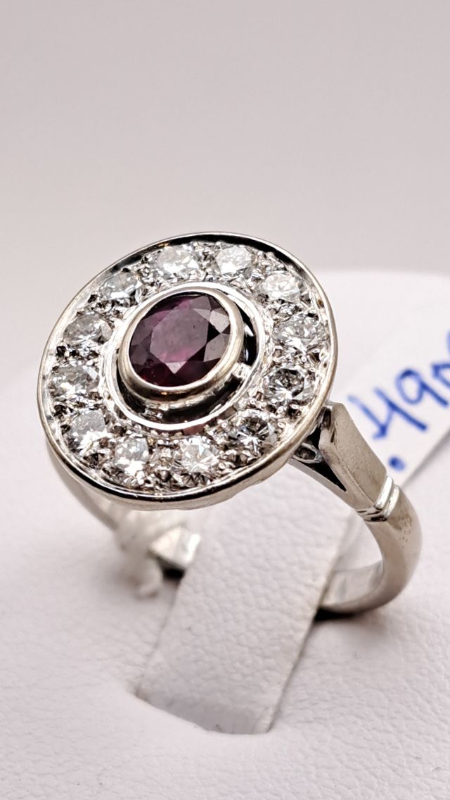 Anillo de Oro de 18K Blanco con Rubí y Diamantes