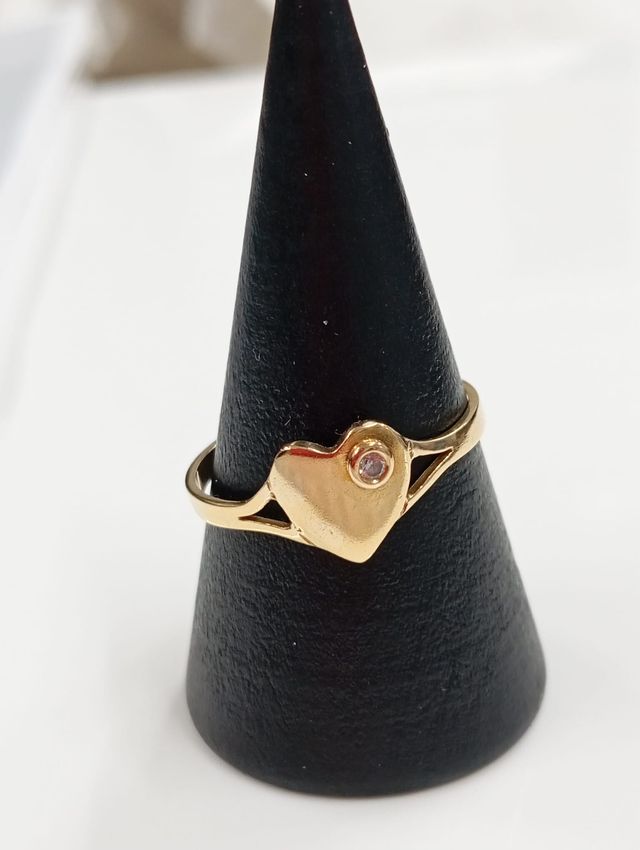 Elegante anillo de oro de 18 quilates con un diseño de corazón y una pequeña circonita.