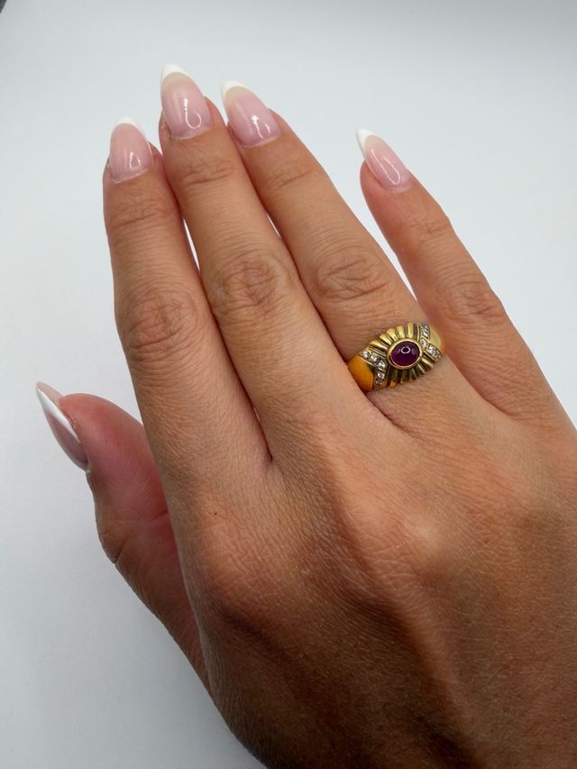 Anillo Oro Amarillo 18k con Rubí y Diamantes