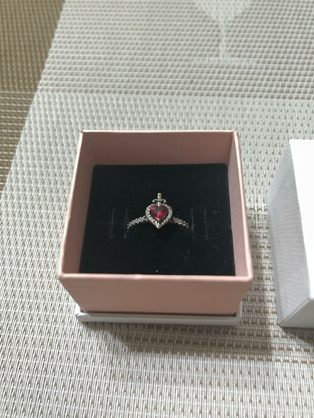 Anillo Pandora Corazón Rojo Plata