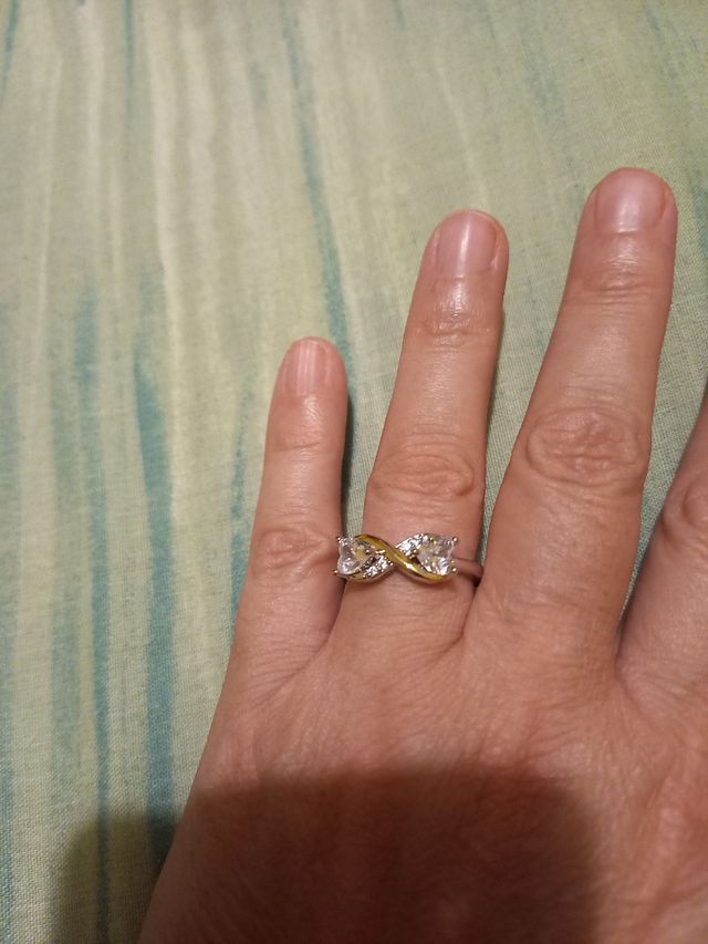 Anillo Plata 2 Corazones Cristal