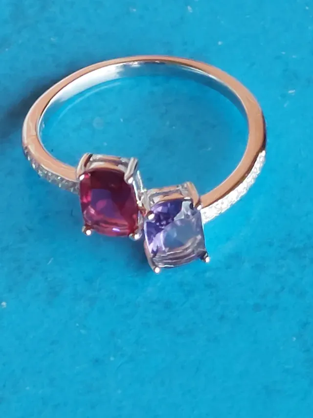Anillo Plata 925 con Piedras Moradas y Rojas