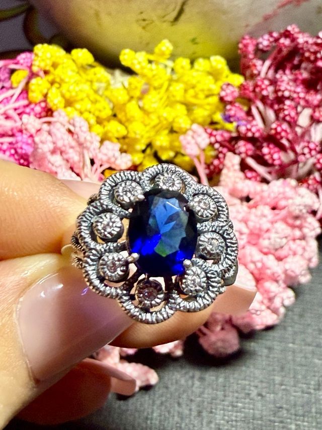 Lujo! Anillo Plata 925 Zafiro Real Azul