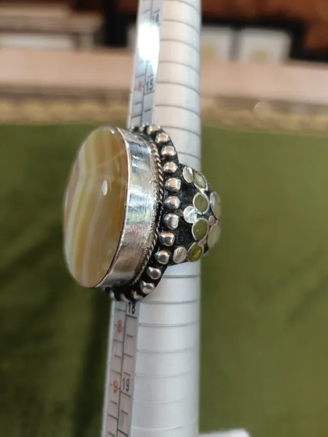 Anillo Plata Antigua Piedra Beige Talla 18.1 mm