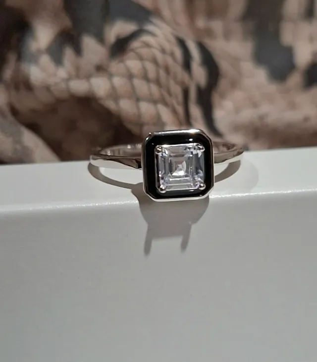 Anillo Plata de Ley con Circonita. Fondo negro.