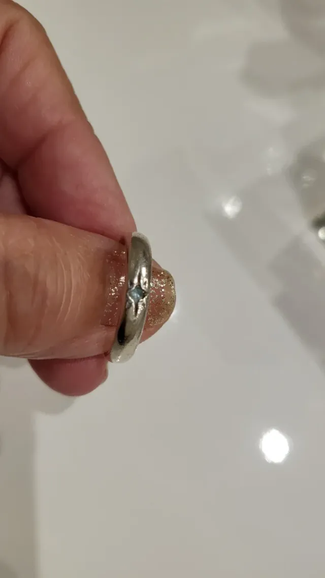 Anillo de plata de ley 925 con sello de garantía unisex con un diseño de estrella y una pequeña gema azul en el centro.
