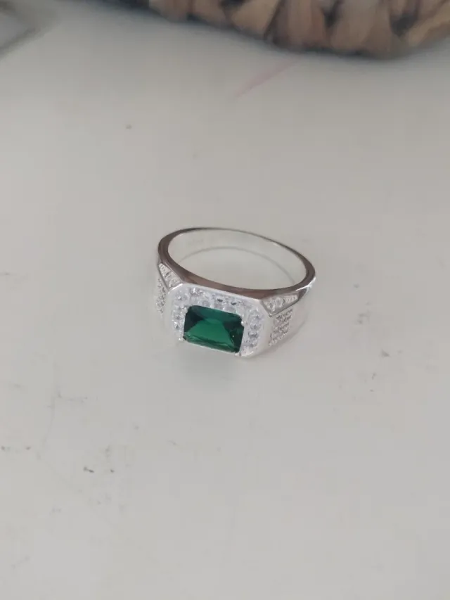 Anillo Plata Hombre Esmeralda Sintética