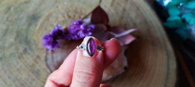 Anillo Plata Ley Amatista Rombo