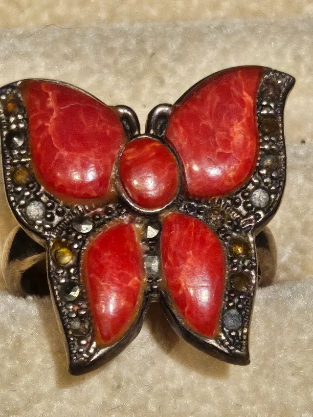 Anillo Plata y Coral Mariposa
