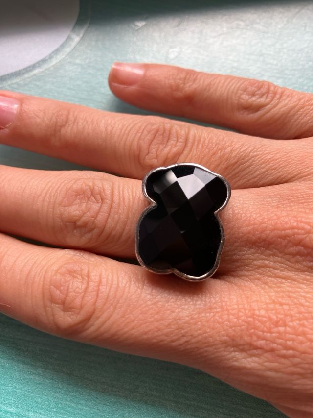 Anillo de plata y onix facetado forma oso mediano tous original talla pequeña
