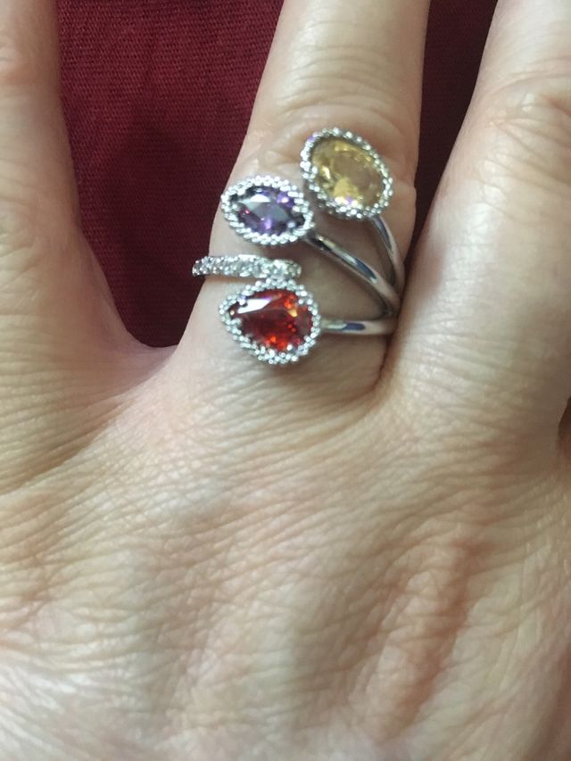 Anillo plateado ajustable con piedras