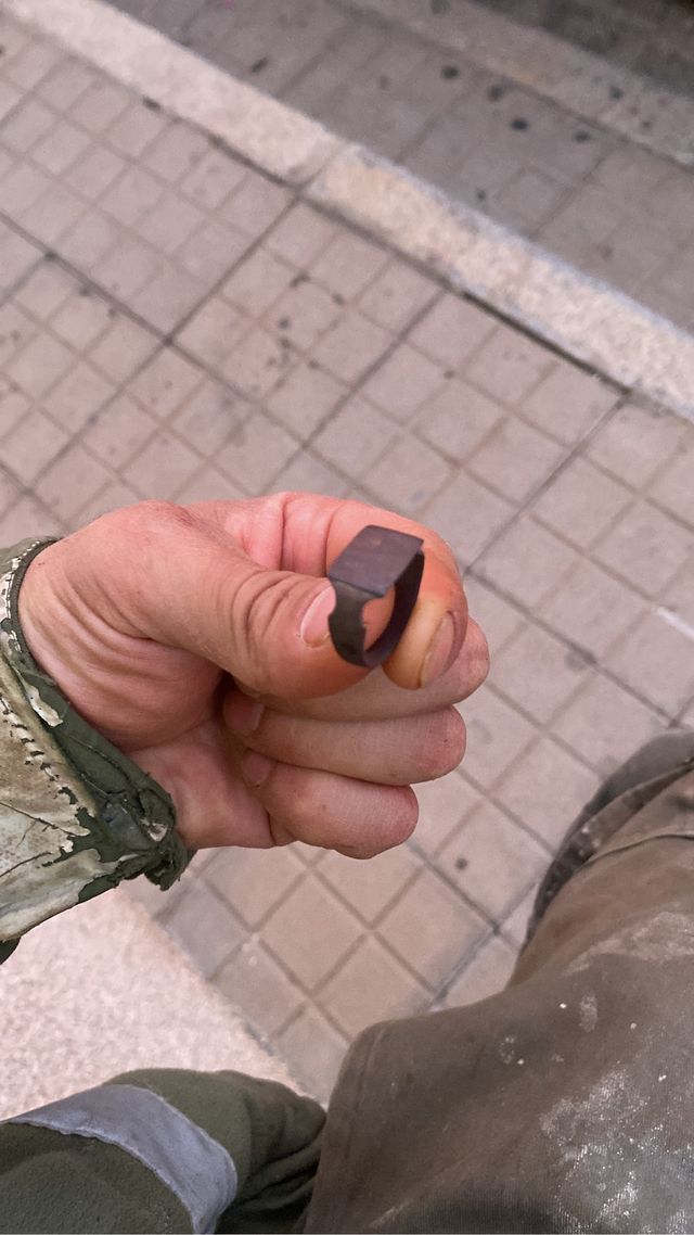 Anillo sello antiguo con las iniciales A R. - Diseño cuadrado. - Tono marrón y dorado. nose cuantos años tendrá encontrado enterrado