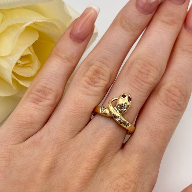 Anillo Serpiente Oro 18kt con diamantes y Rubíes