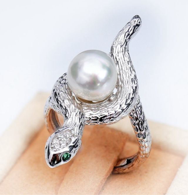 Anillo Serpiente Perla Akoya 8mm Circonitas