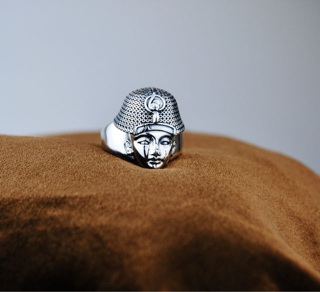 ∙Presentamos el anillo Tut- Ang – Bley ring de plata 925, un anillo que quiere dar vida al niño rey Tutankamón una joya especial que recrea un monumento del faraón Tut, hemos querido que sea único este anillo por eso se ha hecho una edición limitada de dos tallas, 10 o 11 de 20 unidades en total. Es una joya de diseño mezclando el pasado del antiguo Egipto y lo moderno de nuestra firma, con sello de plata 925 y de nuestra maca.