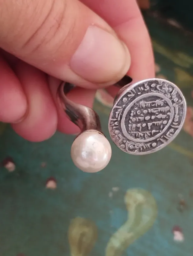 Anillo Vintage Dirham Plata y Perla Ajustable