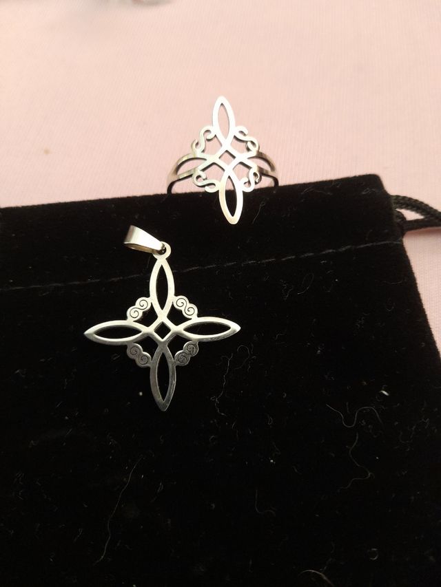 ANILLO Y COLGANTE " NUDO DE BRUJA"