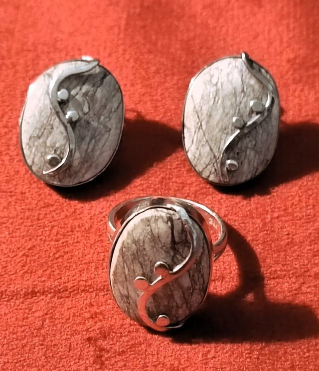 Anillo y Pendientes de Mármol y Plata Querétaro