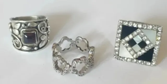 Anillos Plata Ley Circonitas Corazones Cuadrado