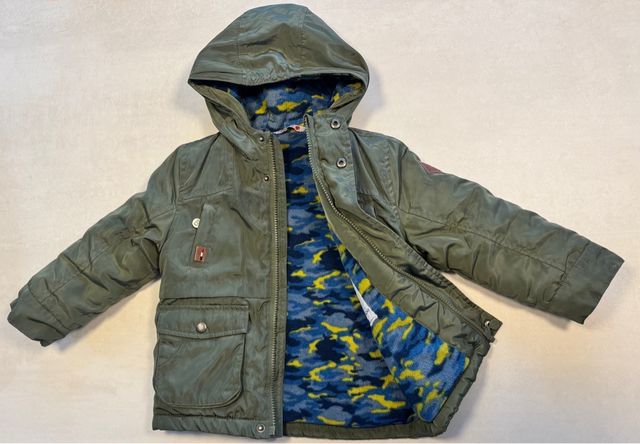 Anorak verde de la marca Boboli. - Diseño con capucha. - Forro interior con estampado de camuflaje. - Bolsillos frontales con solapa y botón.