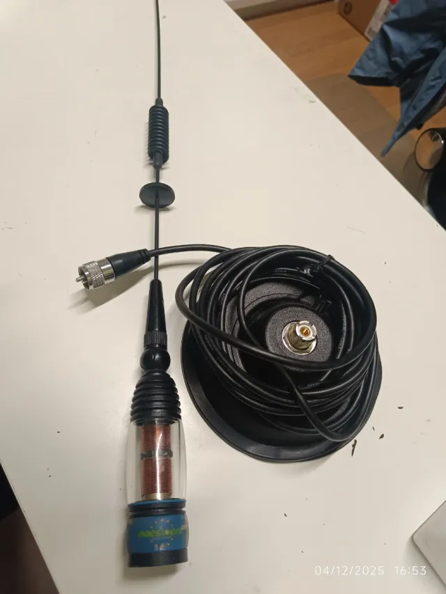 Detalles del productoAntena para radio CB con base magnética. Marca president. Con conector PL. En buen estado.