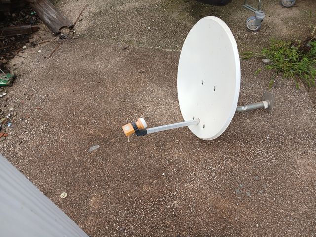 Detalles del productoAntena parabólica de color blanco, en buen estado. Ideal para recepción de señal satelital.