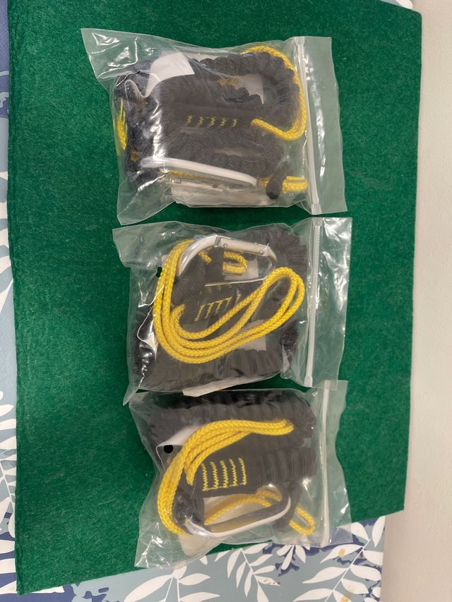 Set de anticaídas con mosquetón. - Color negro y amarillo. - Incluye cuerda. - Cierre de mosquetón. 3 unidades 20€