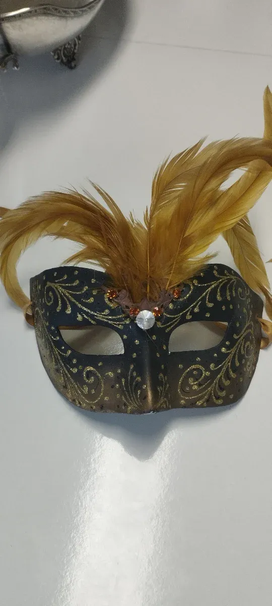 Antifaz Veneciano Auténtico Negro y Dorado