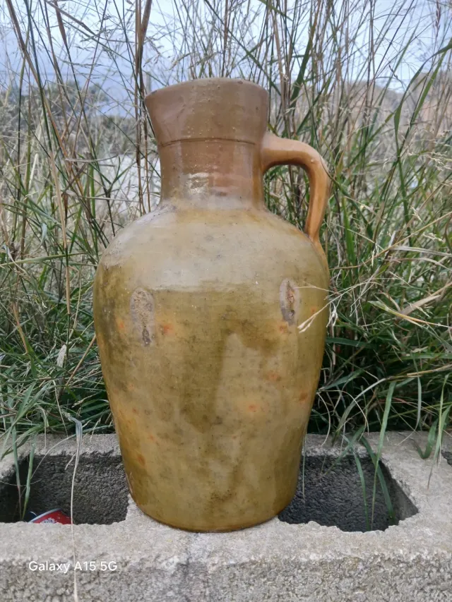 ANTIGUA ALCUZA, ACEITERA DE BARRO VIDRIADA 34 CM.