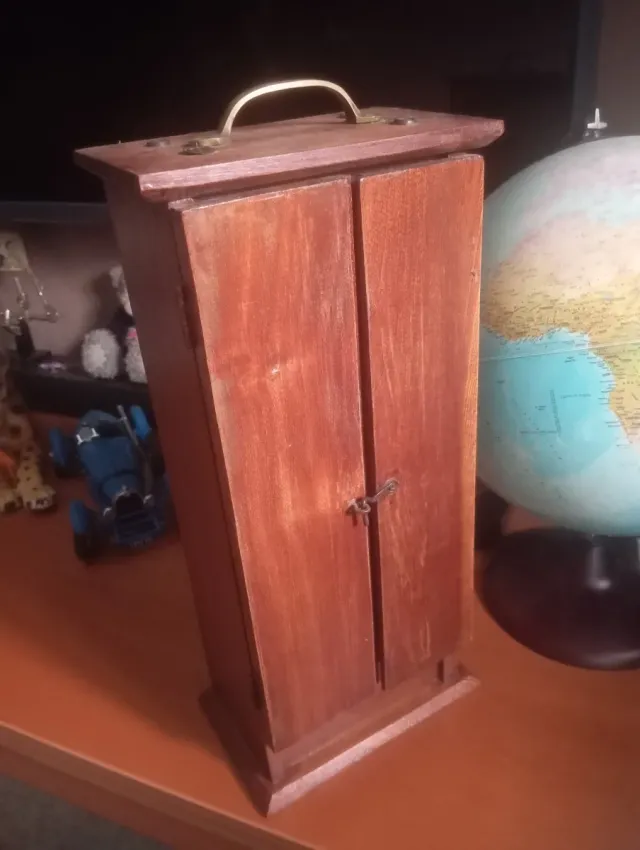 Detalles del productoAntigua limosnera con la virgen de Lourdes, en buen estado a como la cerradura, que funciona y conseva sus dos llaves. Asa de bronce
