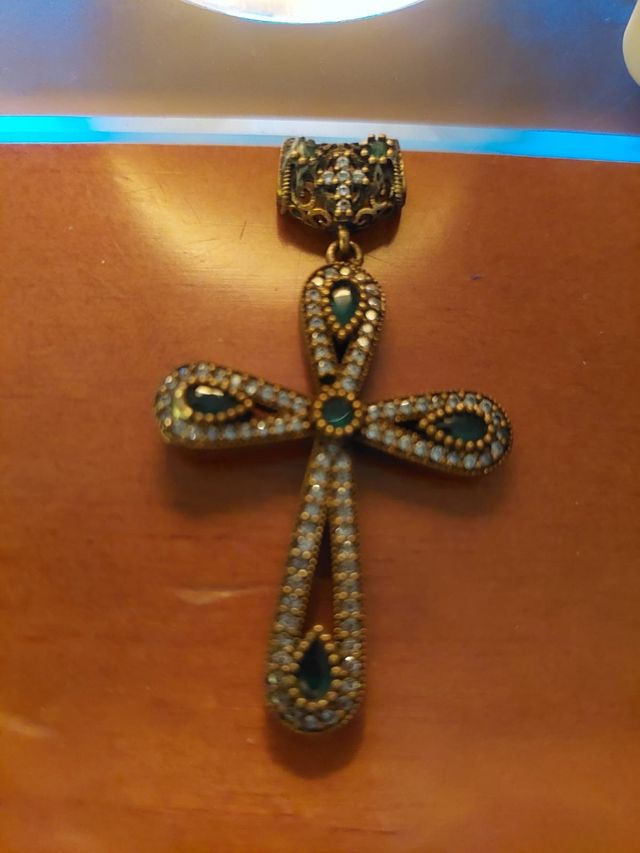 Antigua joya de plata de ley chapada en oro y esmeraldas