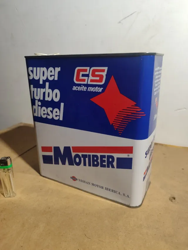 Antigua lata de aceite de motor Motiber CS Nissan en perfecto estado. Vacía
