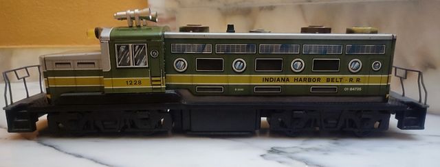 Locomotora EGE. Años 70 - 80. De hojalata. Aunque el mecanismo y la caja de las pilas están en buen estado, desconozco si funciona. Mide 42 cm de largo.