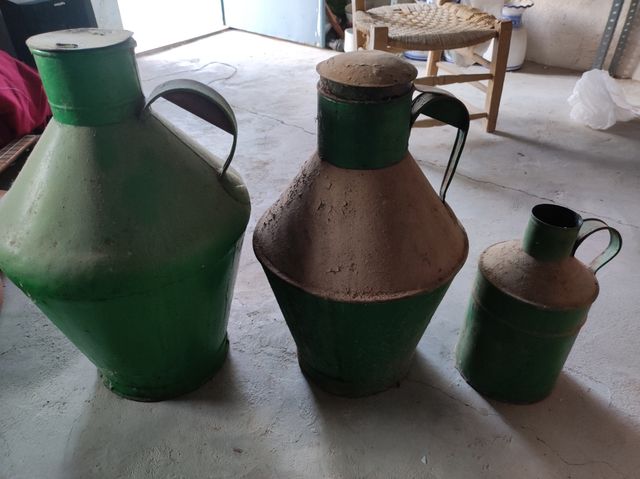 Detalles del productocolección de 3 antiguas aceiteras q se ven en las fotos, tienen muchos años de los 70 mínimo, en un buen estado de conservación, la más grande mide unos 60 centímetros, es difícil encontrar 3 de este estilo en este estado