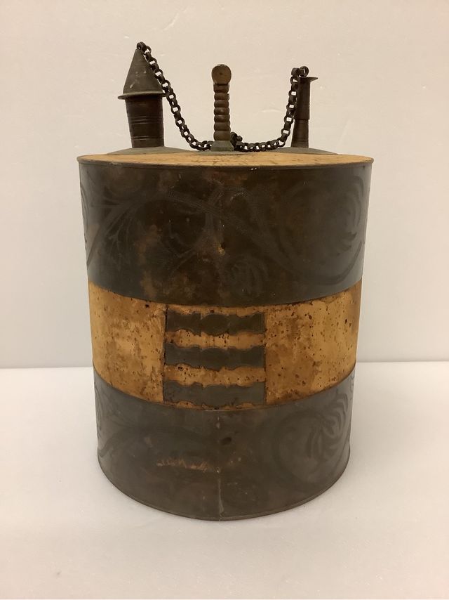 Detalles del productoBotijo antiguo de Sagunto, ideal para horchata, o botijo de novia Fabricado con corcho y laton; grabado Elena 1928