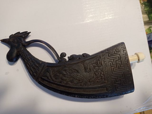 Detalles del productoPreciosa pieza antigua de cuerno tallado, con motivos chinos. Se aprecian detalles de un gallo y otros diseños. Ideal para coleccionistas.