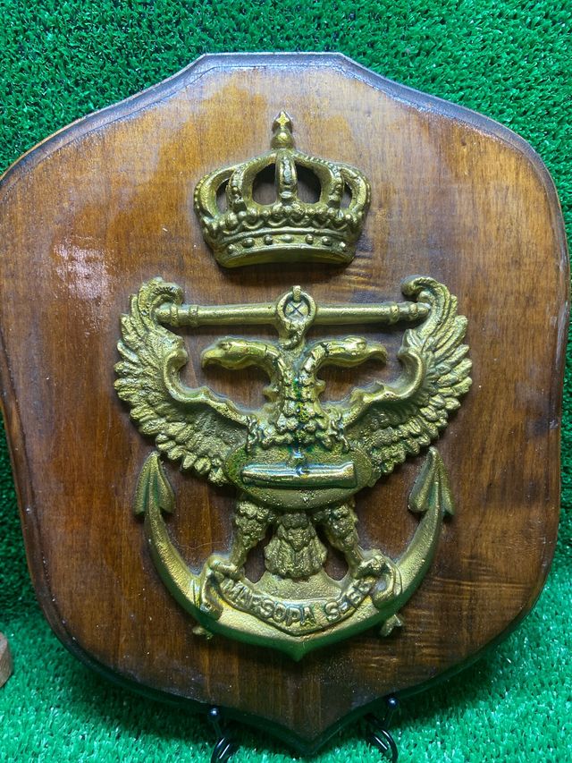 Como nuevoDetalles del productoEste es un antiguo escudo decorativo montado sobre una base de madera.