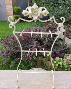 Detalles del productoAntiguo Expositor para joyas con varios ganchos para colgar. Algunas manchas de óxido pero perfectamente útil. En buen estado de conservación. Mide 40X20X12 y pesa unos 350 gramos. Se envía por wallapop o se recoge en Lugo Capital zona Centro.